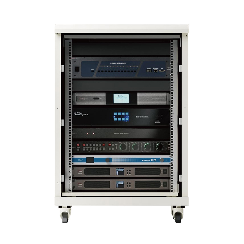 系统内置有:国际先进的自适应调音器、声音反馈 抑制器和高性能会议话筒、物联中控系统、会议专用多指向同轴音箱 等。自适应调音器提供增益共享技术,可以消除会议噪音,减少反馈混响,减少相邻麦克风之间的干扰,自动调整输出电平。反馈抑制器提供的反馈抑制(AFC)功能,噪声抑制(ANR)功能和自动均衡(AEQ)功能,使麦克风的增益表现更加优秀。同时系统中还加入中控面板控制设备,颠覆了传统会议系统有专人音控师在现场操作的模式。只要第一次安装调试完成,就能实现一键开关机,无需专人现场操控。所有设备安装在定制机柜中,大大简化了安装、调试的工作时间。