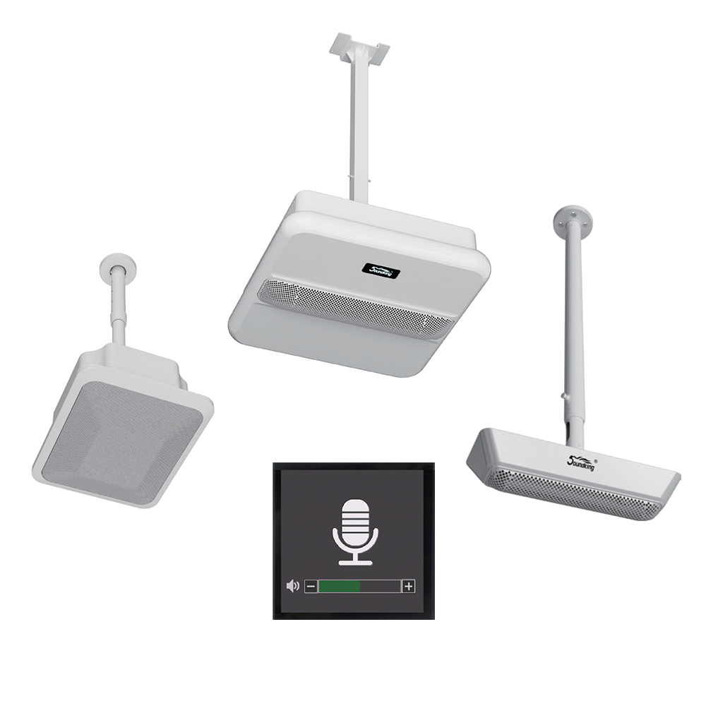 该系统是音王专为学校和各种培训机构开发的一套高科技、多功能智能操控音响系统,其系统由智能拾音一体机,同轴音箱,控制面板等组成。教师讲课无需带麦克风,在室内任意走动就可以实现清晰自然的语音扩声效果。该系统纯属老师喉咙的保护神,为学校老师打造的绿色健康工程
