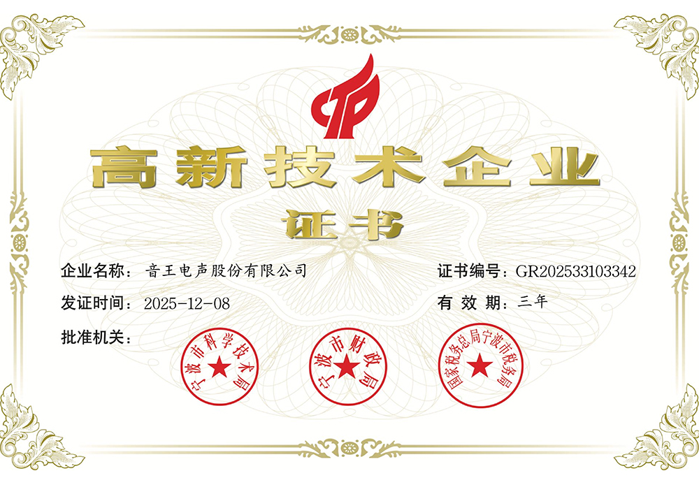 音王拥有“国家企业技术中心”、“国家文化和科技融合示范基地”、“ 国家制造业单项冠军”、“沉浸声文化和旅游部技术创新中心”等数十项国家级平台及殊荣。全球设有22个研发机构,获得600余项发明及实用专利,成为国家级专利示范企业。2025年经国家权威机构评估音王的品牌市值已达47.2亿元。