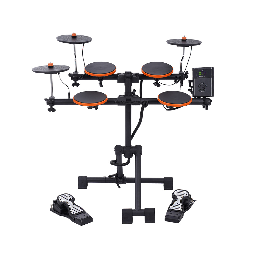旅行胶鼓SD10,鼓架采用音王专利的折叠支架,鼓盘和镲片采用两次注塑工艺制作而成,经久耐用。军鼓及嗵鼓全部采用胶皮鼓尺寸为7寸,所有都为单声道。镲片采用全包胶,胶皮表面,尺寸 为8寸,全部为单通道。鼓盘和钹镲调节部位采用S形旋钮调节,收纳方便。连接管采用独家 专利的装配方式,可完美隐藏线材做到外观简洁。