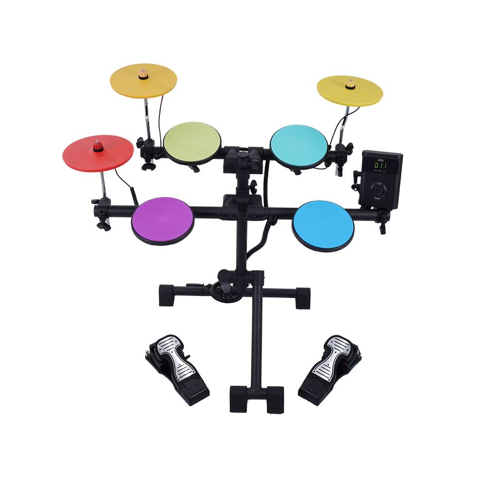 旅行彩虹胶鼓 SD10R,鼓架采用音王专利的折叠支架,鼓盘和镲片采用两次注塑工艺制作而成,经久耐用。军 鼓及嗵鼓全部采用胶皮鼓尺寸为7寸,所有都为单声道。镲片采用全包胶,胶皮表面,尺寸 为8寸,全部为单通道。鼓盘和钹镲调节部位采用S形旋钮调节,收纳方便。连接管采用独家 专利的装配方式,可完美隐藏线材做到外观简洁。