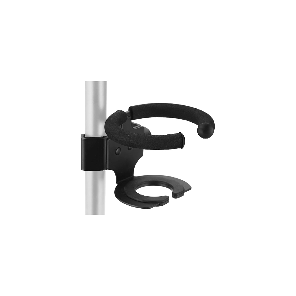 1. 支架上的V型夹具可夹持直径最大为38mm的杆件,大圈部分可放置合适尺寸的矿泉水瓶、保温杯及饮料杯;反向夹持时,可放置适配尺寸的麦克风,满足多种使用需求。