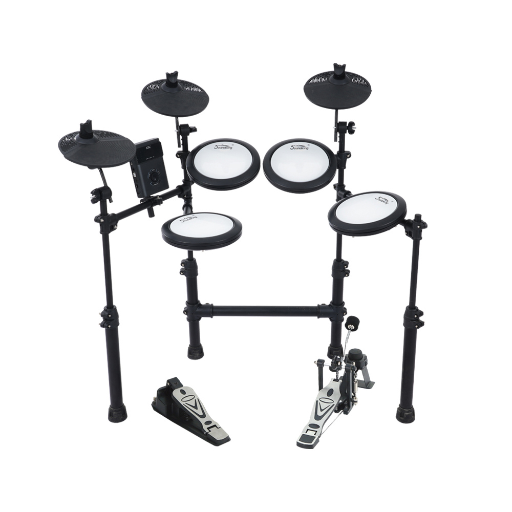 一台集练习和便捷演出功能于一身的入门级电子鼓,具有逼真的音色、完整的鼓盘。此套电子鼓采用鼓管伸缩式设计,占地面积小,方便折叠。军鼓及嗵鼓全部采用7寸单通道网鼓,底鼓升级为2寸低音鼓,非常适合新入门学生练习和鼓手外出演出使用。
