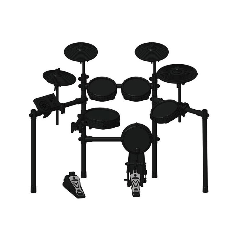 标准配置:5个鼓盘+4个钹钗+踩镲控制盒:KICK,SNARE,TOM1,TOM2,TOM3,RIDE,CRASH,CRASH2,H-HAT,HIHAT CONTROL,支持拓展TOM4,能满足专业人士演出的各类需求。