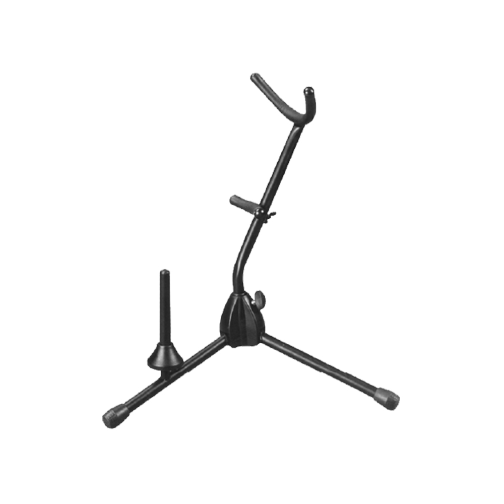 支架为萨克斯长笛黑管两用支架,采用双孔位腹管撑杆设计,可放置多型号萨克斯,脚管配装长笛、黑管放置架。