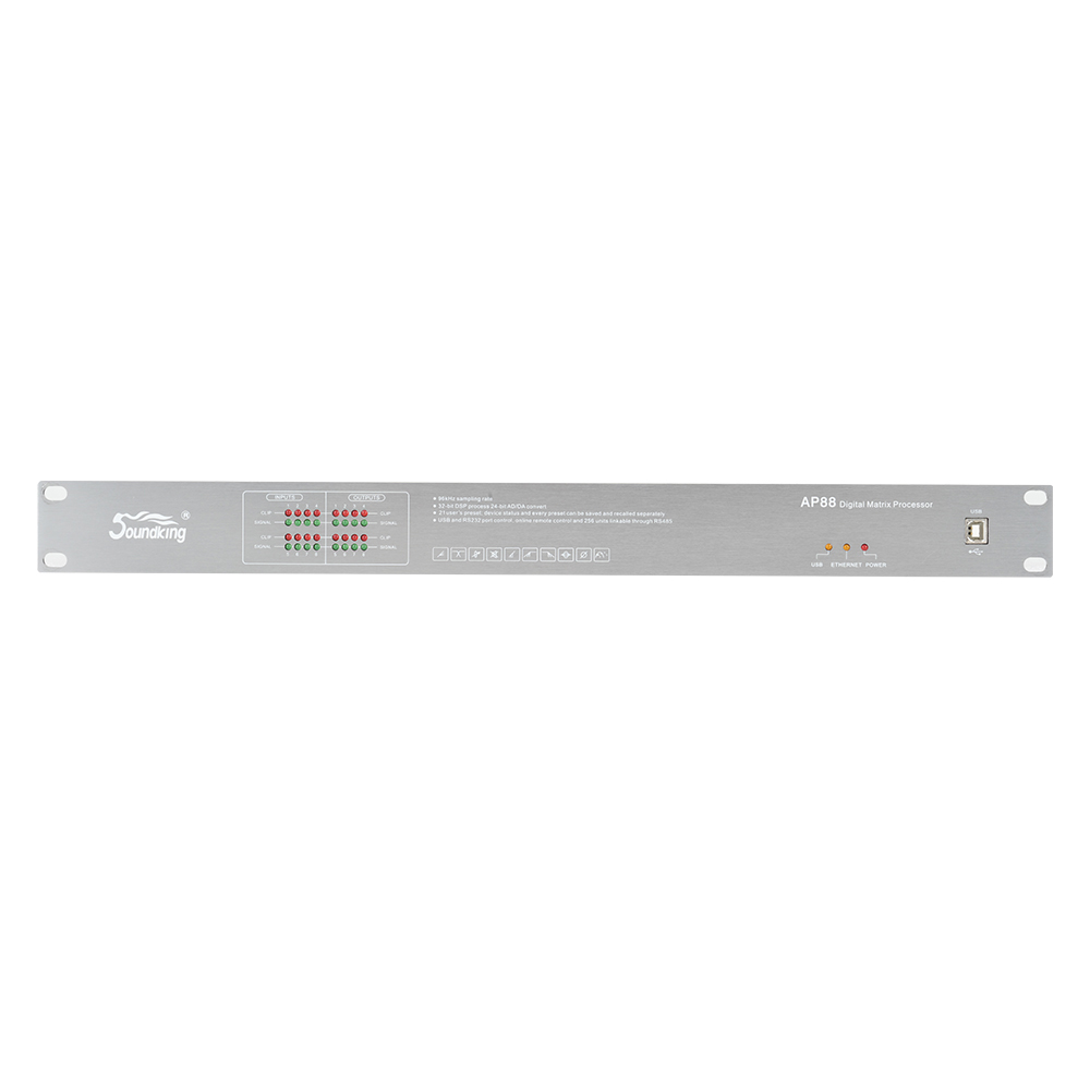 AP88处理器是专为中低端领域打造的高性价比处理器,软件界面模块分明,操作简单,多个用户预设,整机状态和每个预设都可以单独存储和调用。具有密码保护功能,使设备更安全。可通过RS232或者RS485进行远程控制,方便客户智能化控制。