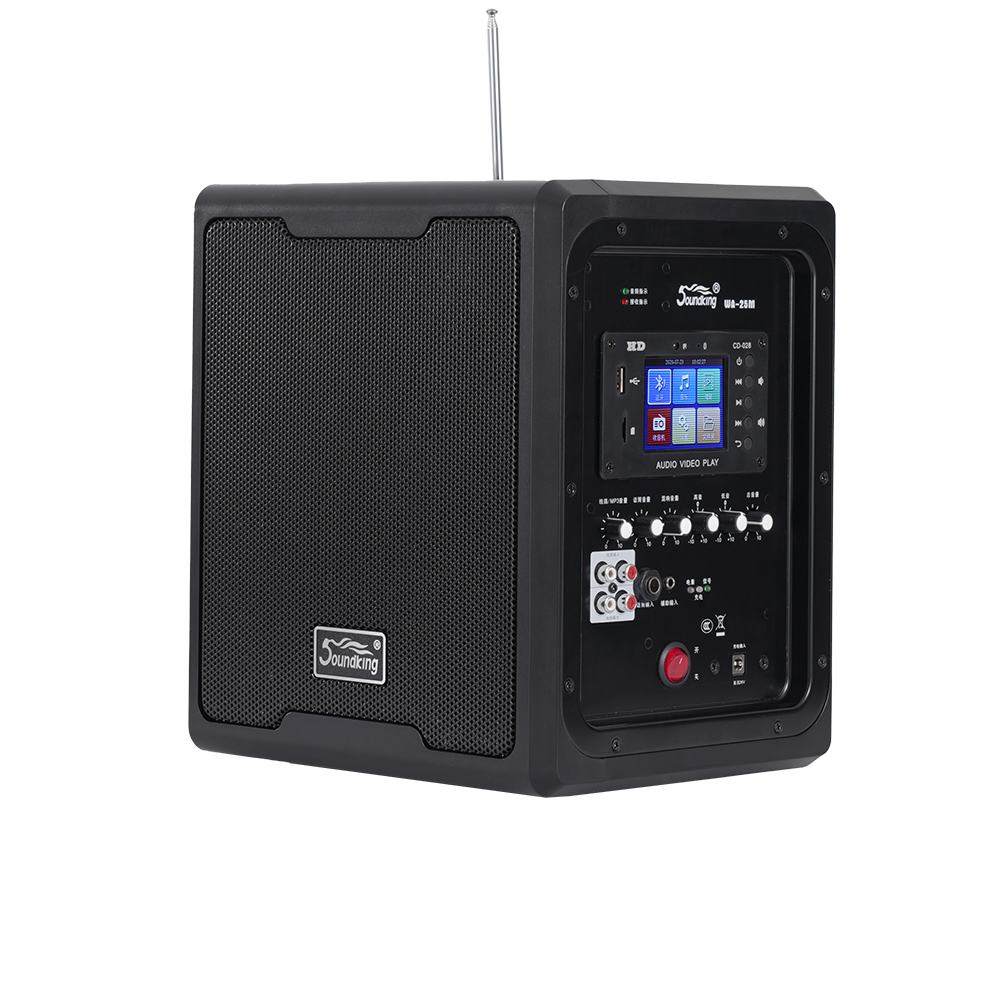 WA-25M是一款集多功能于一体的便携式有源小音箱,采用高强度ABS材质,坚固耐用 且轻巧便携,造型独特彰显个性。音箱采用高低音无源分频电路与高效率D类放大器,确保声音清晰强劲不失真。内置2.8英寸高清MP3播放器及超30米U段自动对频无线话筒,支持音频、蓝牙播放及广播收听。同时,配备大容量可充电锂电池, 智能化充电模式,让音乐享受更加自由无忧。