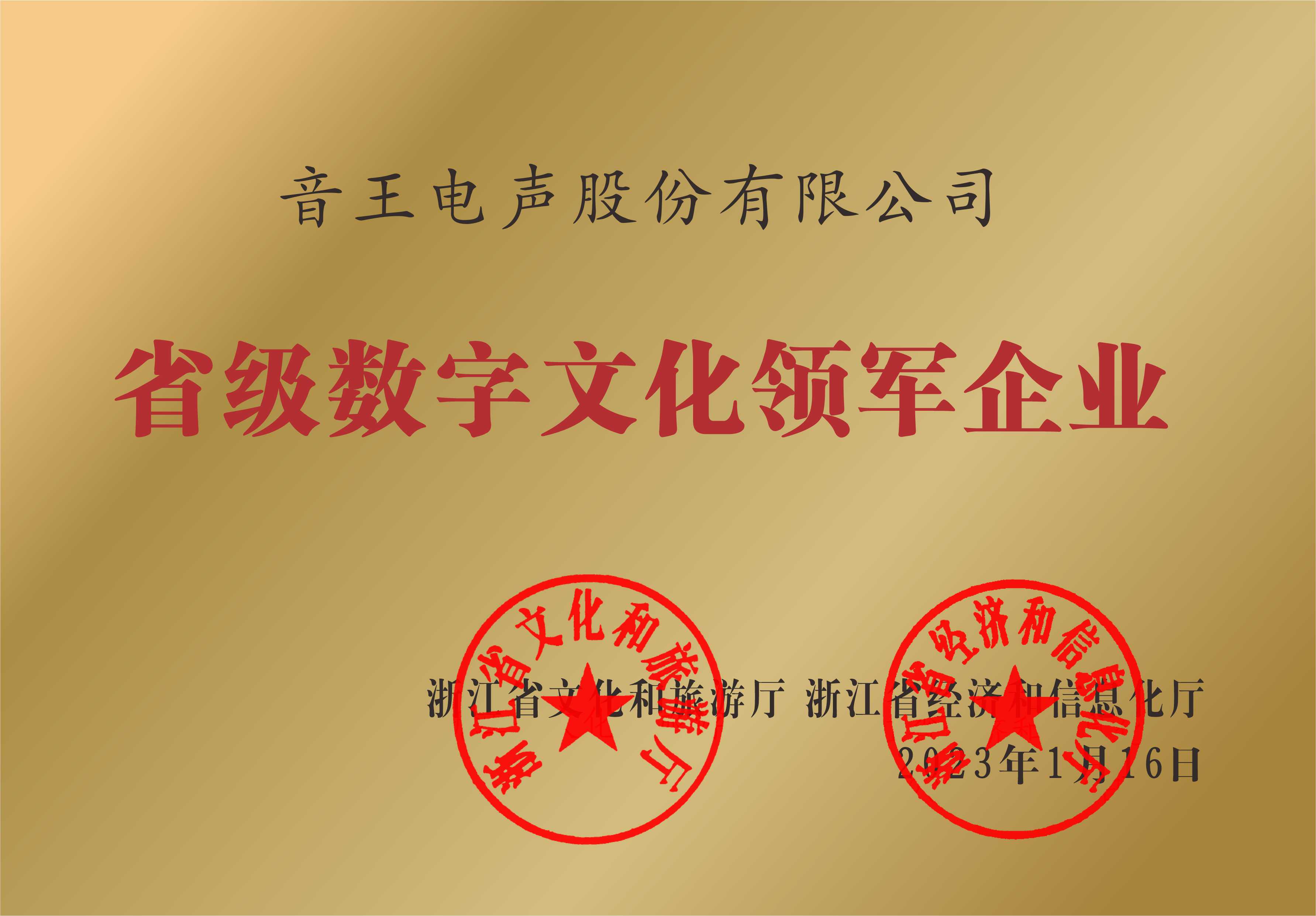 公司被联合国工业发展组织授予“全球创新网络音王产业创新示范基地”、“沉浸声文化和旅游部技术创新中心”和“全球科技创新大会战略合作伙伴”,被国家多部委授予国家文化和科技融合示范基地、国家企业技术中心、国家两化融合管理体系AA级、国家博士后科研工作站、国家文化出口重点企业、省级数字文化领军企业和省级院士工作站等科研平台与荣誉,2023年被国际权威机构《音乐贸易》评定为全球专业音响与乐器行业225强第14位。