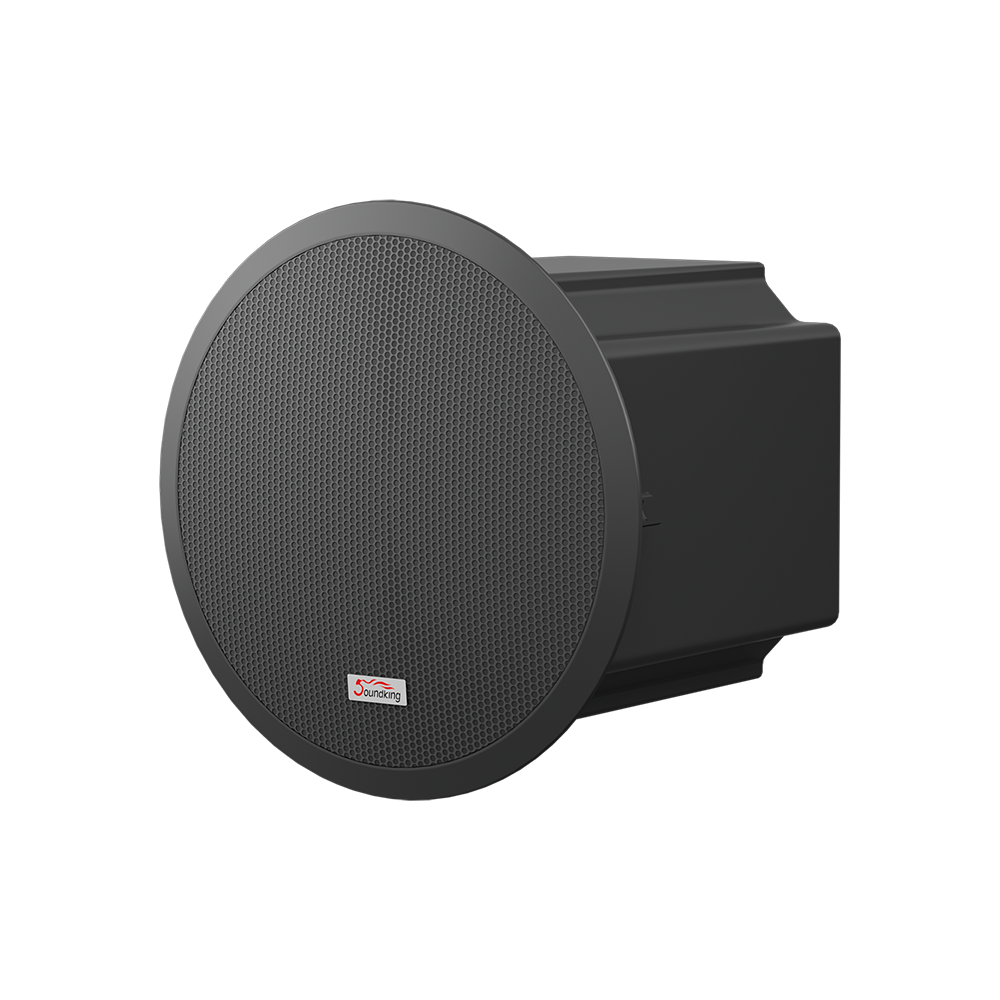 在安装方式上,HC系列音箱 展现出高度的灵活性与适应性。支持内嵌 / 吸顶式与垂吊式两种安装方式,能够轻 松融入各种室内环境,无论是隐藏于天花 板之中,还是悬挂于空间之内,都能完美 匹配并美化装饰效果。这种安装方式确保 了声音传播的理想效果,使得音箱的扩声 性能得到充分发挥。