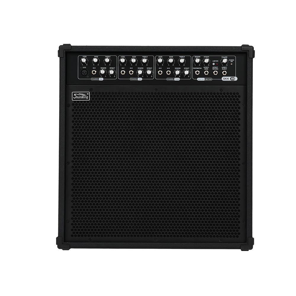 SKK120是一款全新设计的键盘乐器功放,专为键盘乐器手而设计。它拥有三个输入通道,每个通道都配备了两段EQ调节功能,让您可以根据需要调整音色。此外,每个通道还具有独立的音量控制和混响音量控制,让您可以更好地掌控音乐的表达效果。这款产品配备12寸低音单元和3寸高音单元,为您提供更加丰富、清晰的音质体验。箱体采用优质木材制作而成,不仅外观精美,而且具有良好的共振效果,进一步提升了音质的表现力。同时,此产品具有出色的瞬态响应和足够的动态范围,能够准确还原音乐的细节和力度变化。无论是在各种类型的演出中,SKK120都能为您带来卓越的音乐表现力和舞台效果。