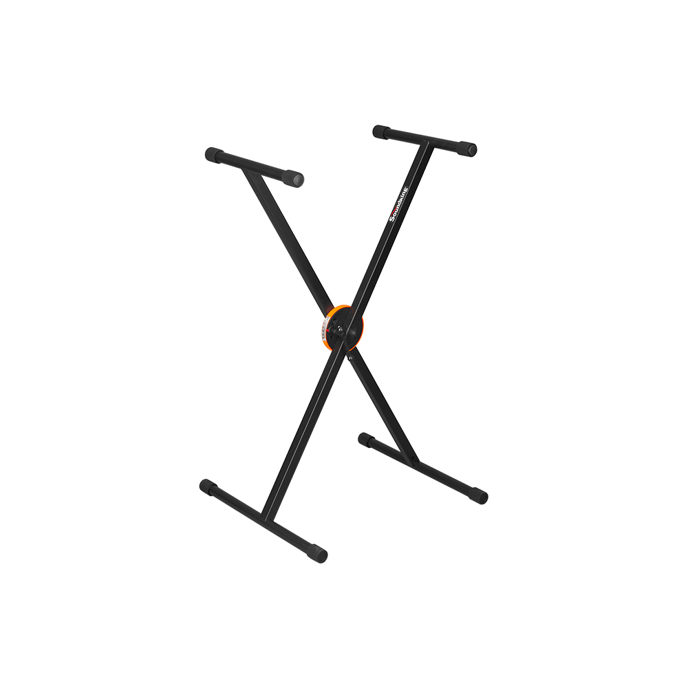 一体式单X型键盘支架,客户选择好支架高度后拨动标识到相应位置,琴架在合拢和打开过程中天需其它操作,调节转盘内部装了复位弹簧自带记忆功能减少操作。