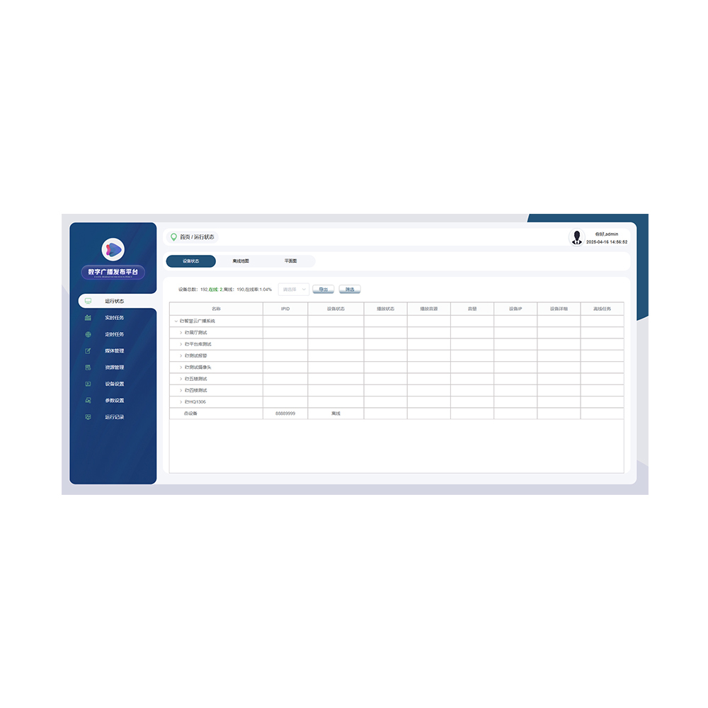 3.支持在GIS地图展示广播设备基本信息、播放信息、地理信息、运行状态,不同状态区分显示;