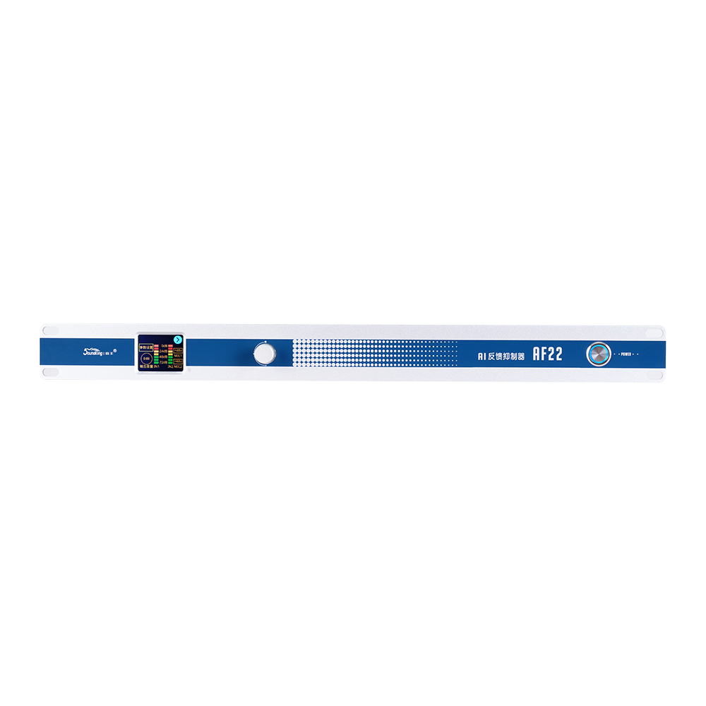 AF22 AI反馈抑制器内置噪声门、压缩器、参量均衡、反馈抑制、高低通等功能, 具有全自动检测现成啸叫点功能,通过DSP系统对声音进行处理,高速有效的抑制啸叫,有效提升本地扩音声压和清晰度,搭配1.8寸触控屏,一键调节,方便用户操作。