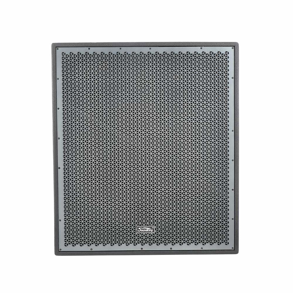 TS-SUB由二只18”低频纸锥扬声器组成,倒相式箱体设计,对角式单元安装,有效的减轻了箱体驻波,又得到了紧凑的箱体外观。为充分发挥扬声器的性能,音箱内部无分频网络,通过外接数字音响处理器分频优化。箱体采用18mm波罗的海桦木层夹板制作,嵌槽式结构,刚性好,无声染。