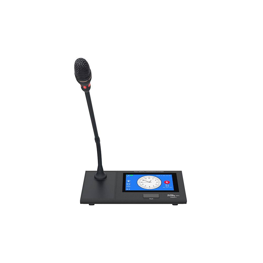 3. 红绿双色雾面指示灯设计,指示发言状态。当红色灯环亮时,表示正在发言,当绿色灯环亮时,表示申请等待发言