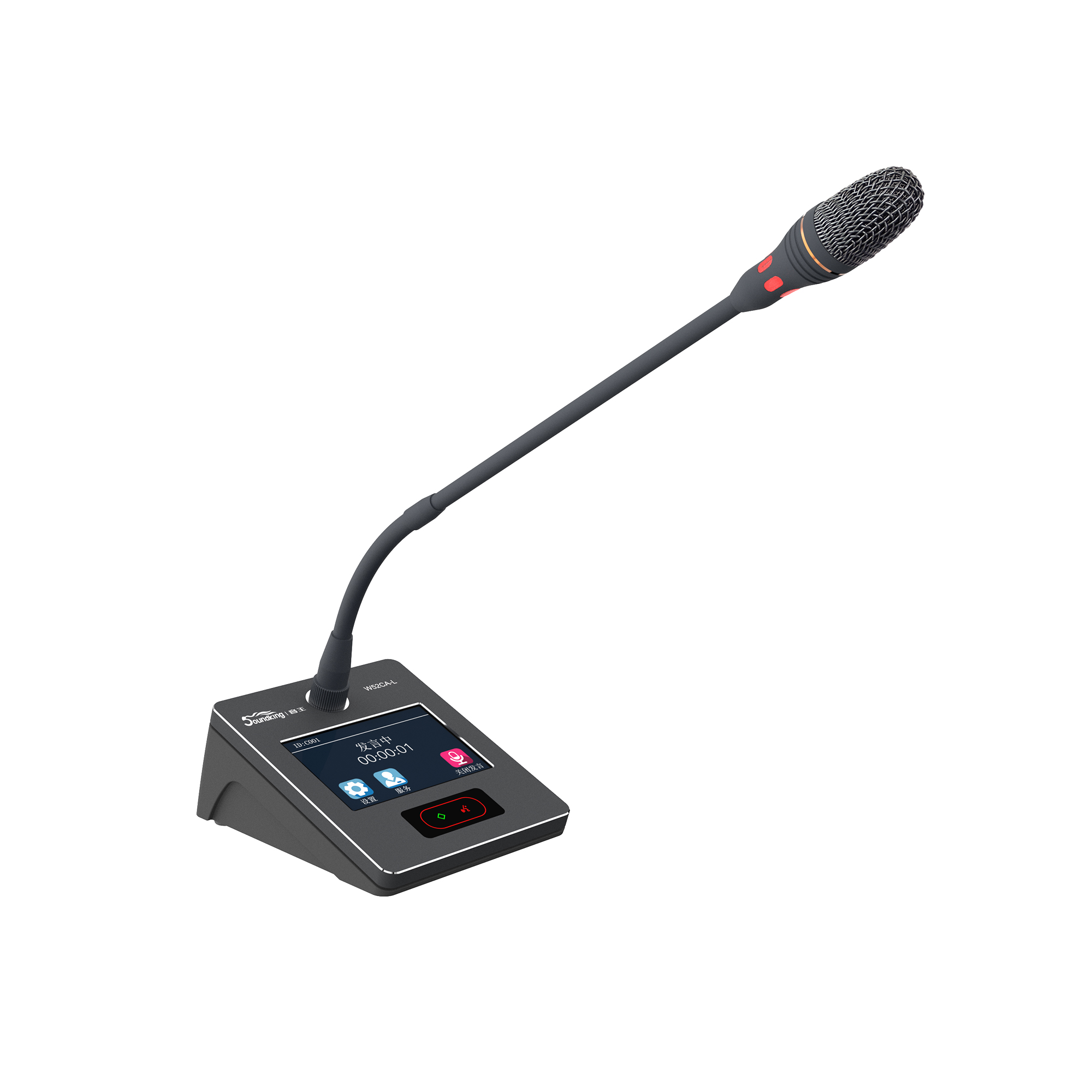 3. 红绿双色雾面指示灯设计,指示发言状态。当红色灯环亮时,表示正在发言,当绿色灯环亮时,表示申请等待发言